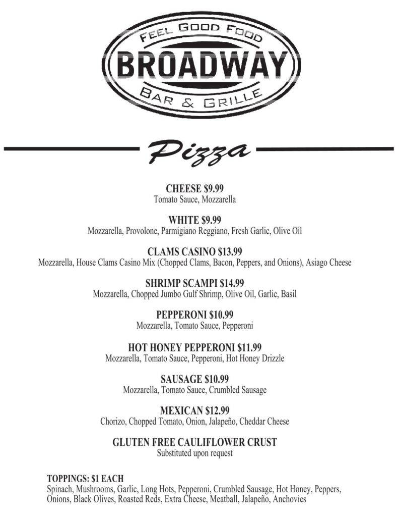 • Broadway Pizza Menu